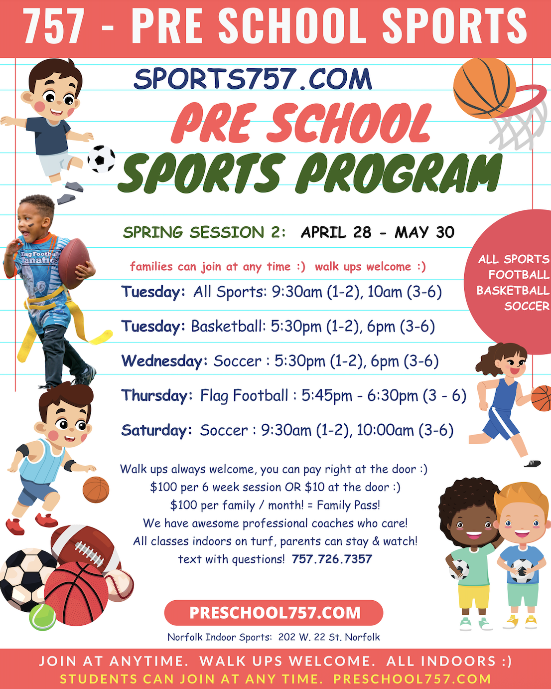 Our company provides a variety of sports training classes year round in Norfolk & Virginia Beach for students of all ages!